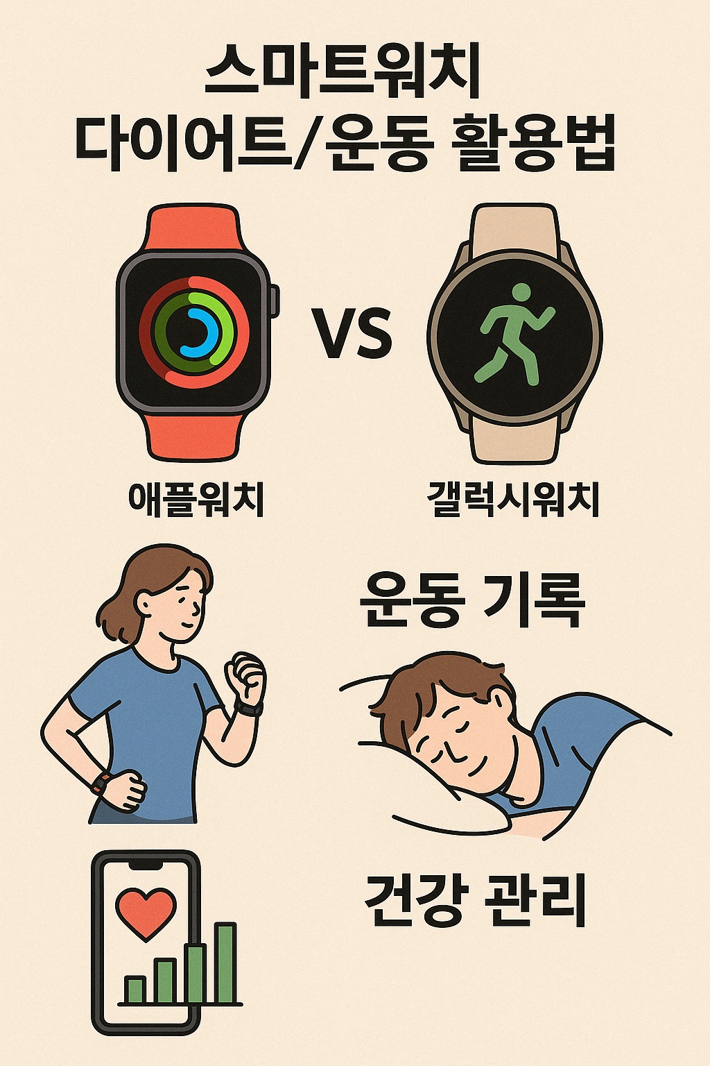 건강한 라이프스타일을 위한 스마트 디바이스 중 하나로 빠르게 자리 잡은 '스마트워치'. 그중에서도 애플워치와 갤럭시워치는 건강 관리와 피트니스 트래킹, 수면 분석 등 다양한 기능을 앞세워 많은 사용자들의 사랑을 받고 있습니다. 특히 다이어트와 운동 루틴을 체계적으로 관리하고 싶은 분들에게 스마트워치는 '손목 위의 헬스트레이너'로 불릴 만큼 유용한 도구입니다.