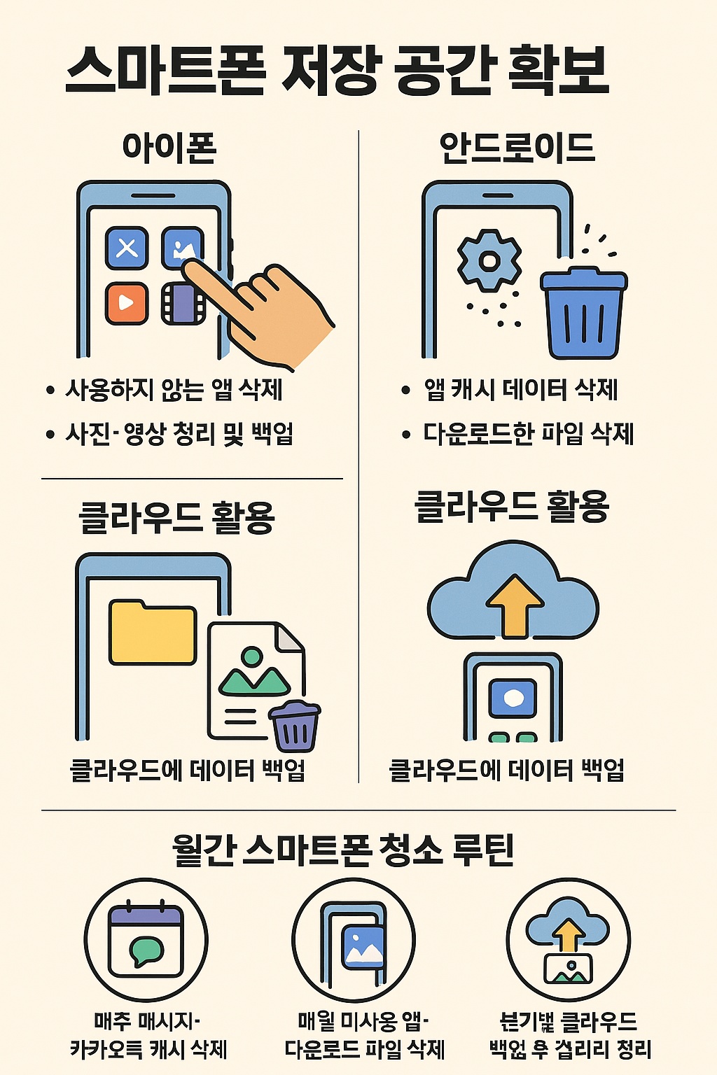 핵심 키워드: 스마트폰 저장 공간, 아이폰 용량 정리, 안드로이드 캐시 삭제, 클라우드 사진 백업, 스마트폰 최적화