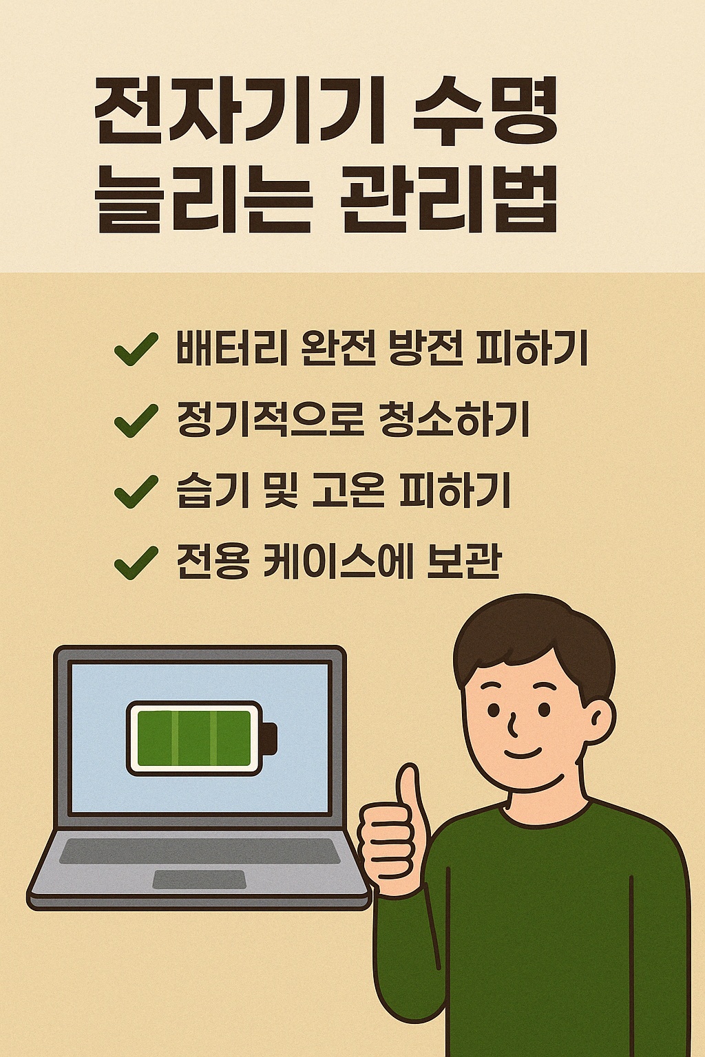 전자기기 수명은 우리의 작은 습관에 달려 있습니다. 오늘 소개한 배터리 수명 늘리는 법, 전자기기 청소법, 보관 요령 등을 실천하면 고장 걱정 없이 오랜 시간 사용할 수 있습니다. 당신의 스마트한 관리 습관이 전자기기의 가치를 더욱 높여줄 거예요.